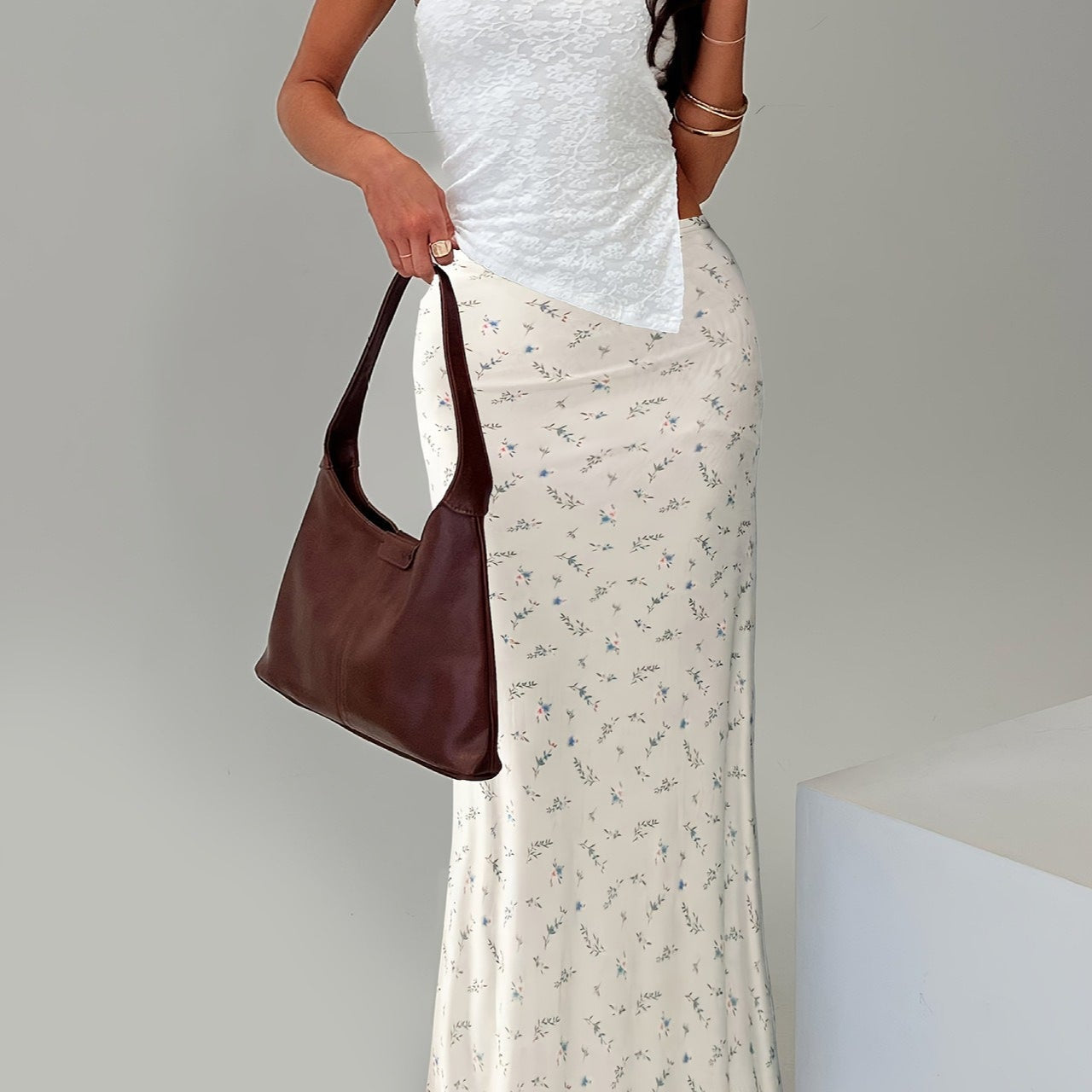 Blomstret chiffon havfrue maxinederdel