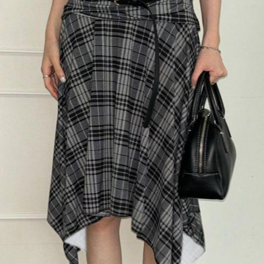A-formet ternet uldnederdel, markeret talje