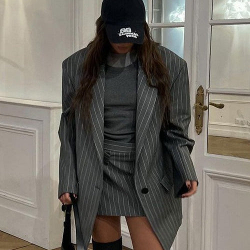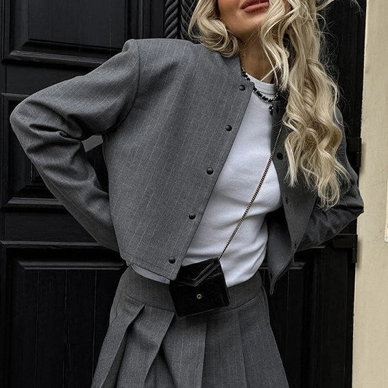 Trendy stribet blazersæt i to dele
