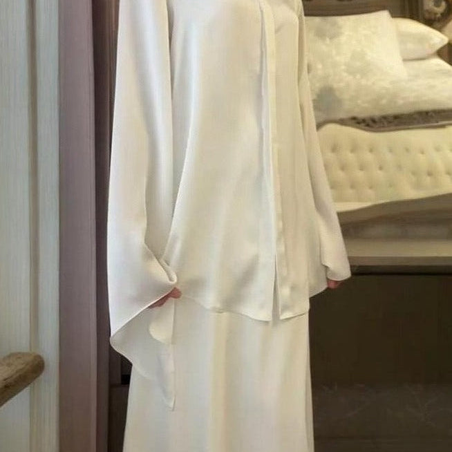 Elegant todelt rygløst sæt med transparent tørklæde og sjal