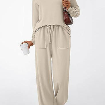 Todelt casual chic sæt med lommer og snøre, ensfarvet