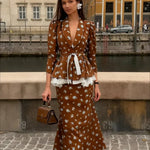 Todelt havfruekjole i bomuld og hør med dyb halsudskæring