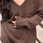 Todelt sæt: afslappet striktrøje med V-hals og havfrue-nederdel
