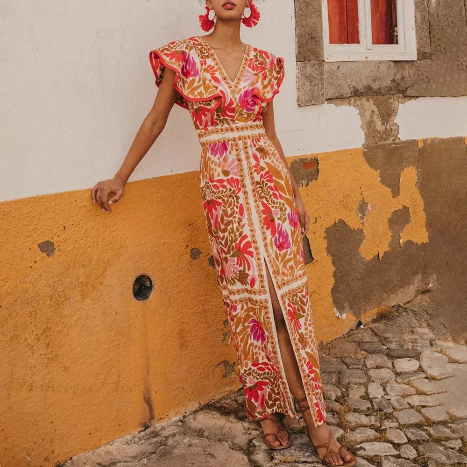 Todelt sæt med en nederdel med retroprint og V-hals