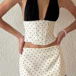 Todelt sæt med polkaprikker og blondedetaljer uden ryg