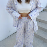 Todelt sæt: retro blomstret skjorte og bukser