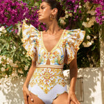 Majolica shortssæt med to dele, V-hals og flæser