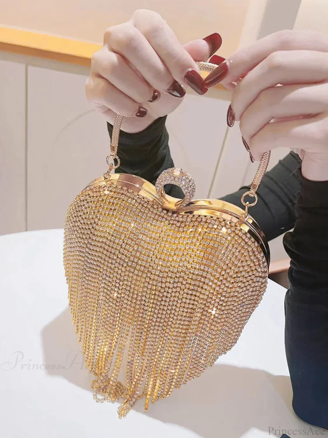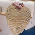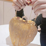 Luksuriøs hjerteformet aftenclutch prydet med rhinsten og diamanter, ideel til et bryllup.