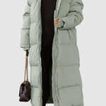Lang damefrakke – Quiltet dynejakke – Oversized pasform – Højhalset hætte