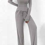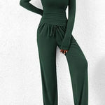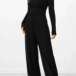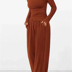 Dame loungesæt – Langærmet top med rund hals – Bukser med brede ben og elastisk talje