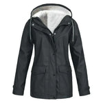Vandtæt damejakke – Afslappet pasform – Fleeceforet hætte – Mellemlang