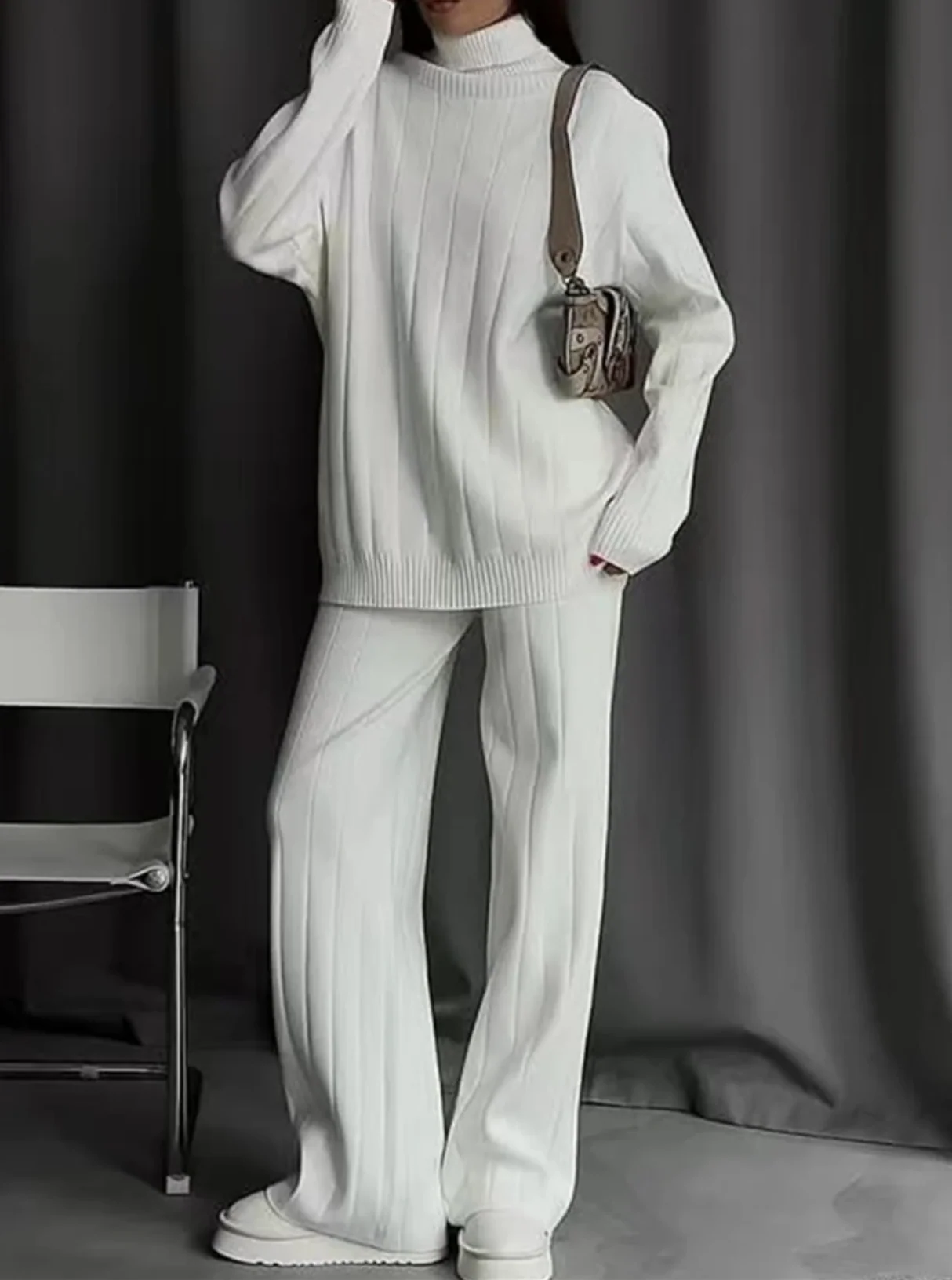 Damebuksesæt – Ribbet strik – Lige snit – Høj hals – Strækstof