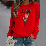 Dame sweatshirt med rund hals – Afslappet pasform – Sjovt kattedesign – Blødt stof