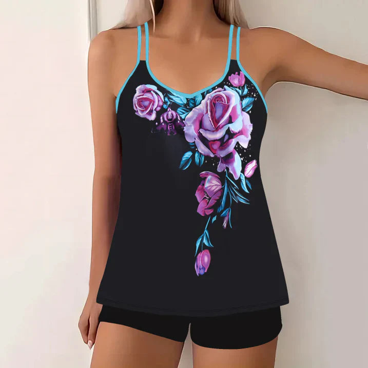 Dame Tankini – 2-delt sæt – V-hals – Tynde stropper – Komfortabel pasform
