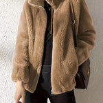 Dame teddyjakke – Oversized pasform – Standkrave med lynlås – Hoftelængde