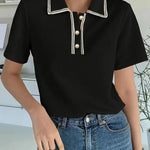 Damepoloshirt – Normal pasform – Korte ærmer – Dekorativ knapkrave