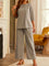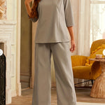 Dame loungewear-sæt – Afslappet pasform – 3/4-lang top med rund hals – Flagrende bukser med vide ben