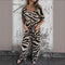 Damesæt med V-hals og vide ben – Zebraprint – Bindebånd i taljen – Løstsiddende pasform