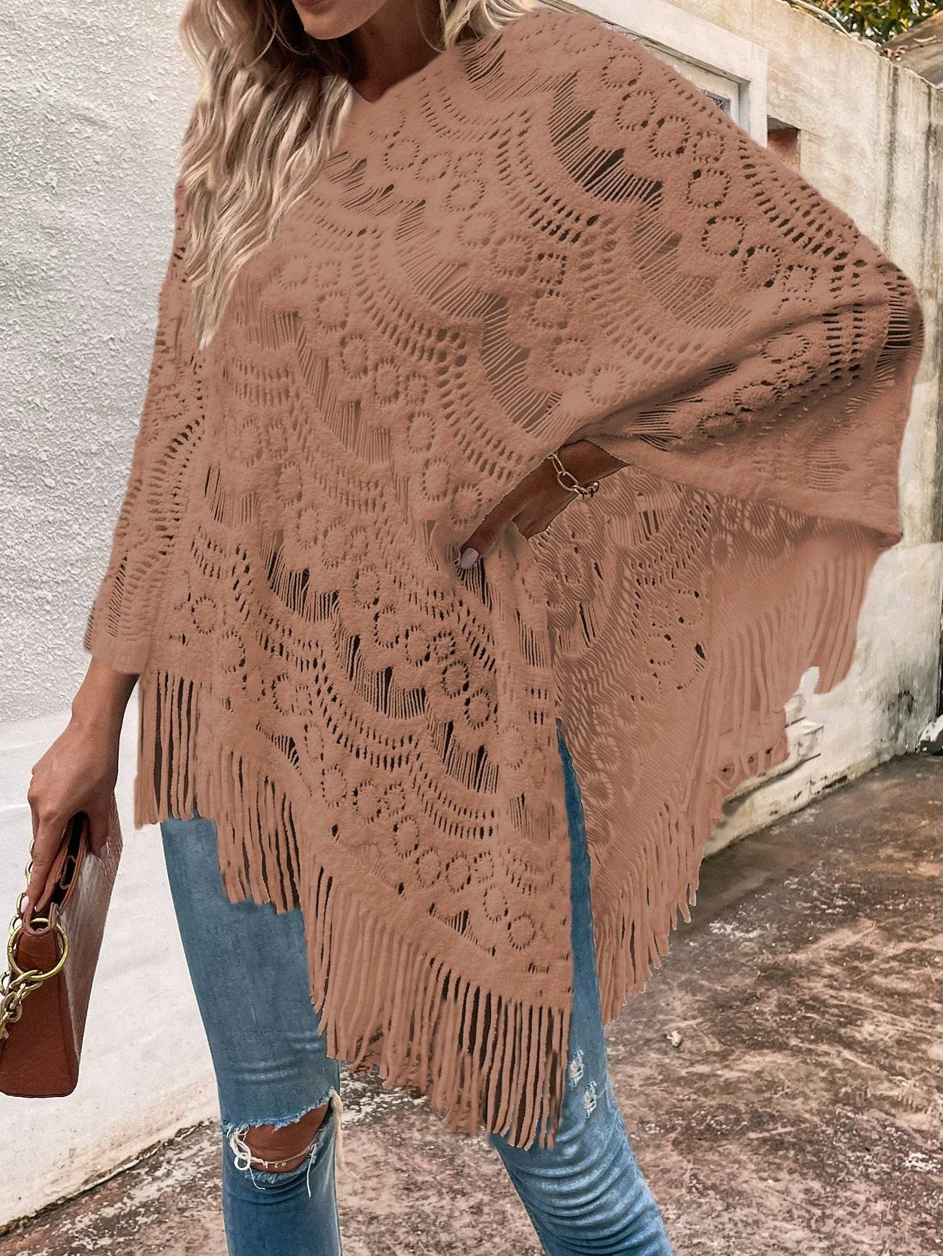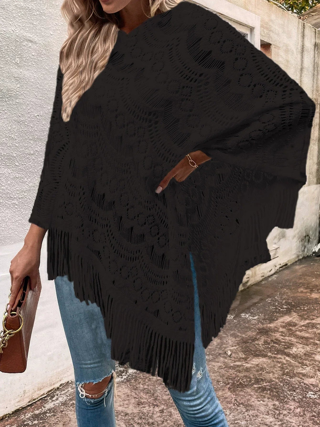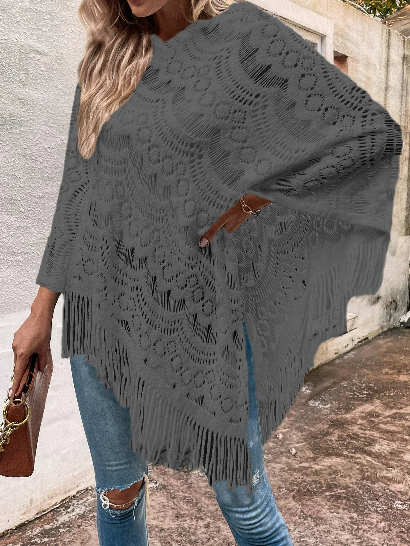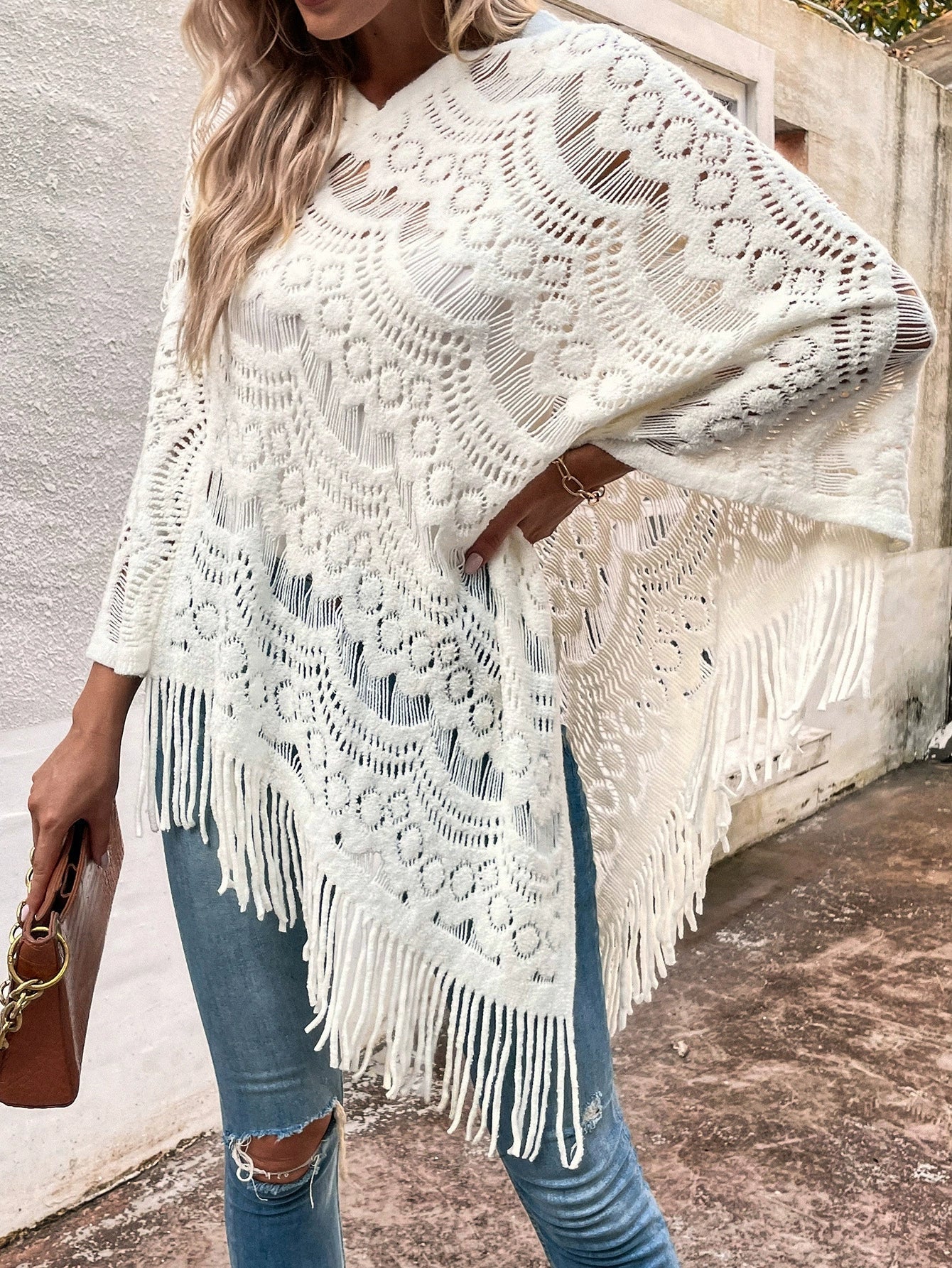 Damesjal – Blondestrik – Oversized pasform – Asymmetrisk frynset kant