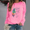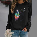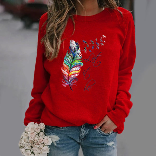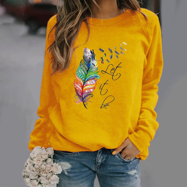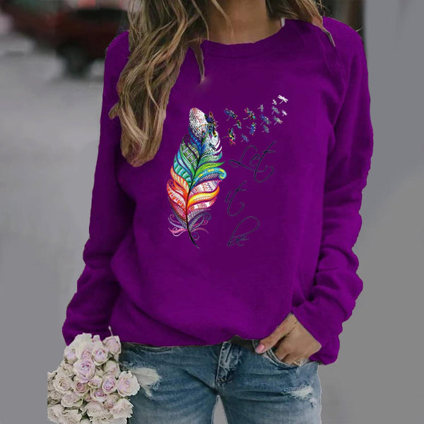 Damesweatshirt – Afslappet pasform – Fjerprint – Rund hals – Lange ærmer