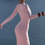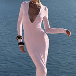 Elegant og sexet bodycon maxikjole med dyb halsudskæring og lange ærmer