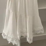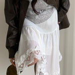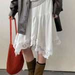 Elegant og trendy asymmetrisk midi-nederdel med blondepaneler