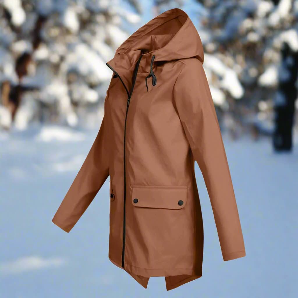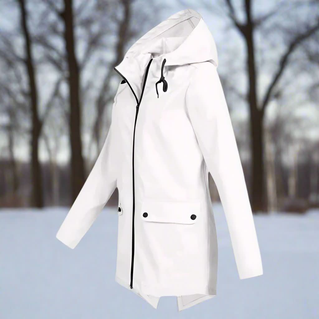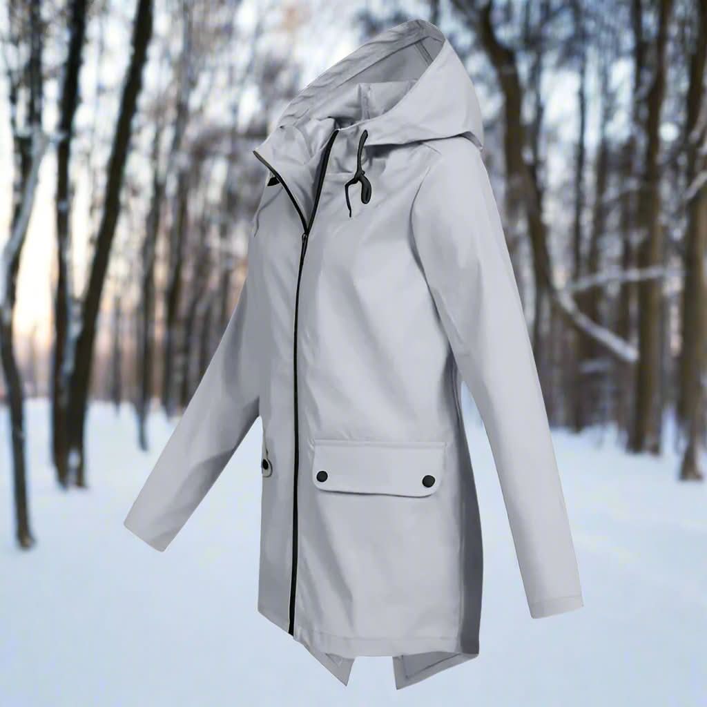 Stilfuld, vejrbestandig og komfortabel regnfrakke med hætte til kvinder