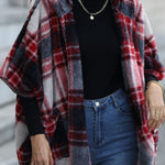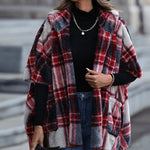 Kortærmet frakke med hætte i blødt, ternet stof