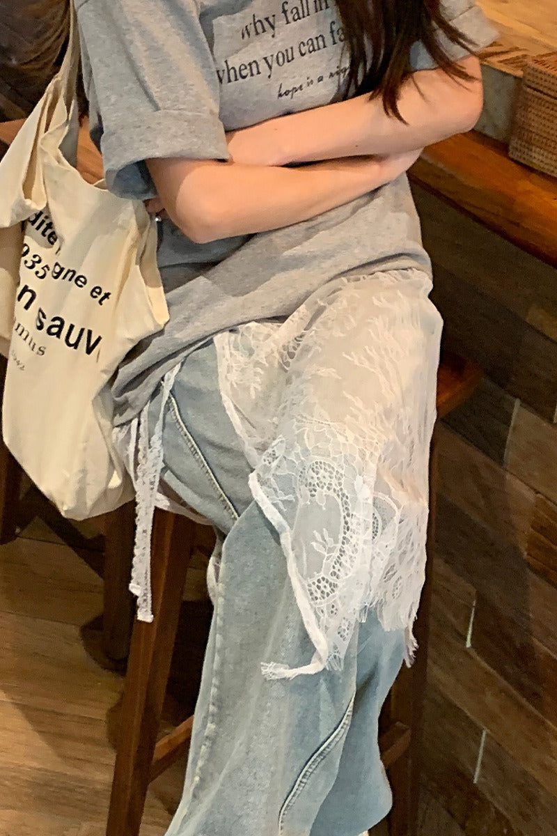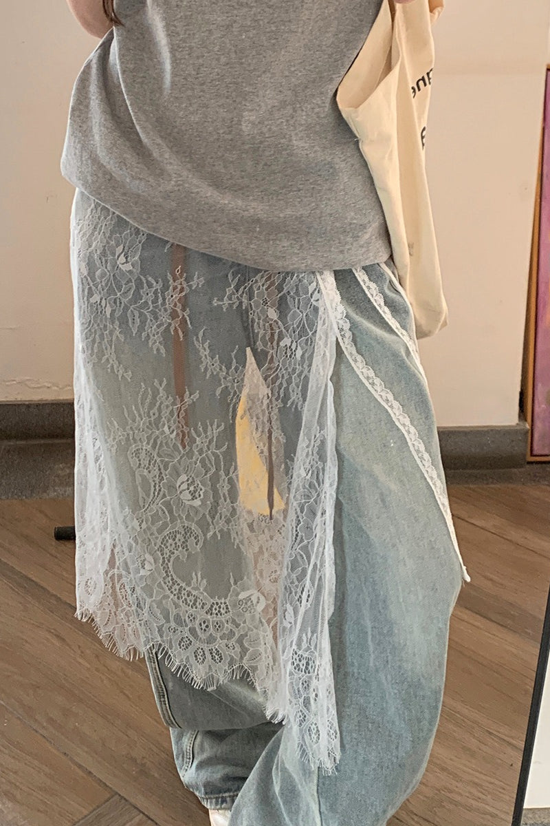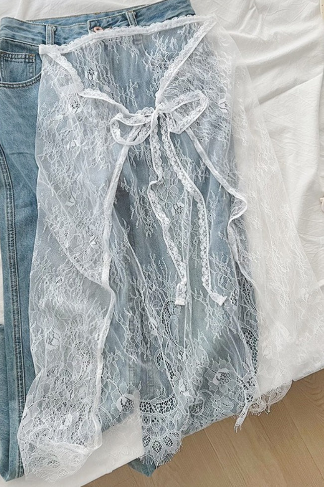 Alsidig miniskørt med et unikt lagdelt blondeforklæde og snøre
