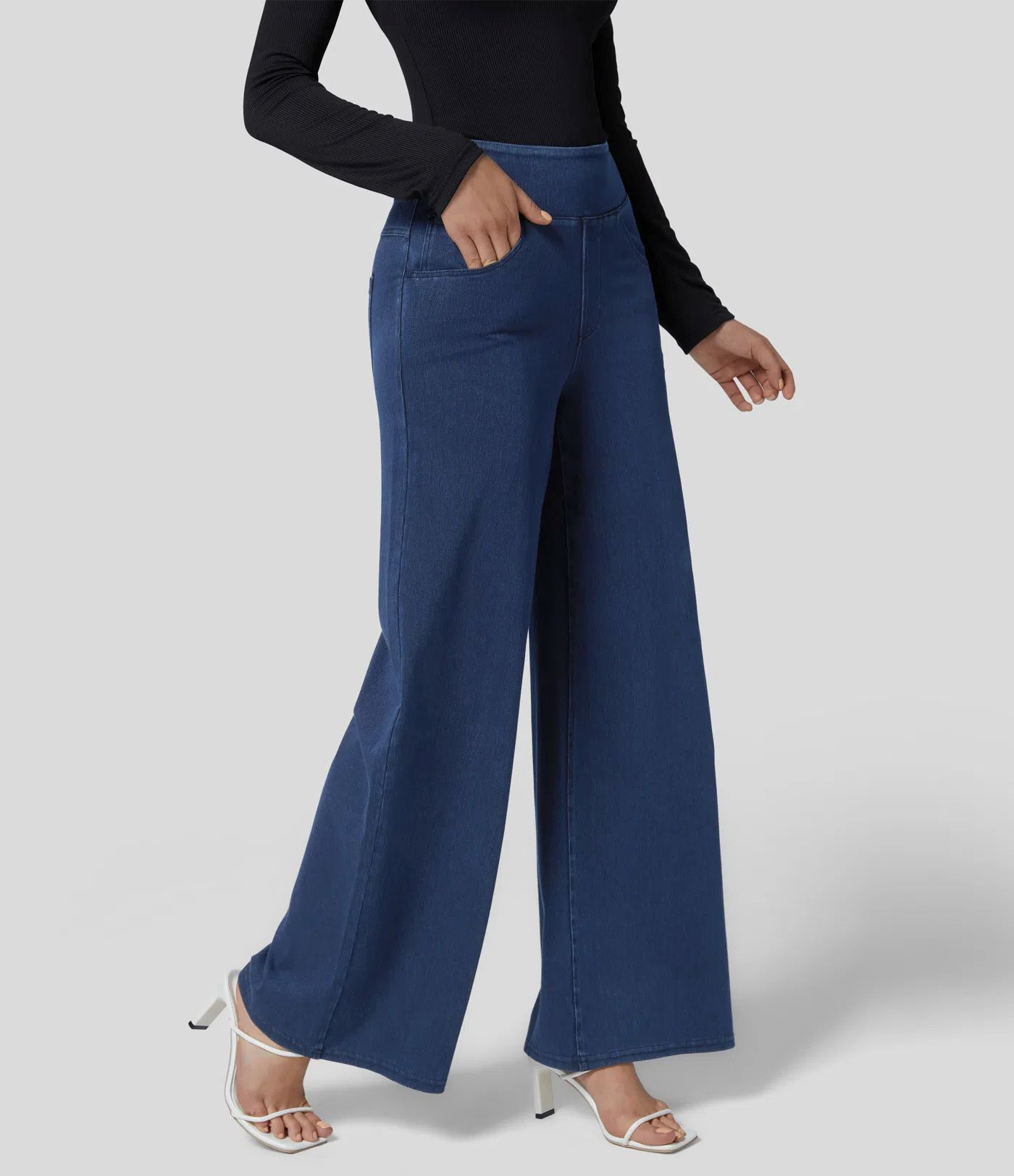 Damebukser med vide ben – Høj talje – Flagrende snit – Struktureret denimmodel