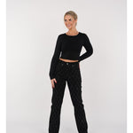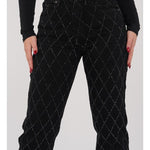 Damebukser - Højtaljet - Vide ben - Diamantmønster med nitter - Elegant stil