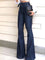 Damejeans med svaj – Høj talje – Bindebånd foran – Struktureret snit – Ankellængde