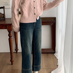 Ribbet cardigan med glitrende sløjfe