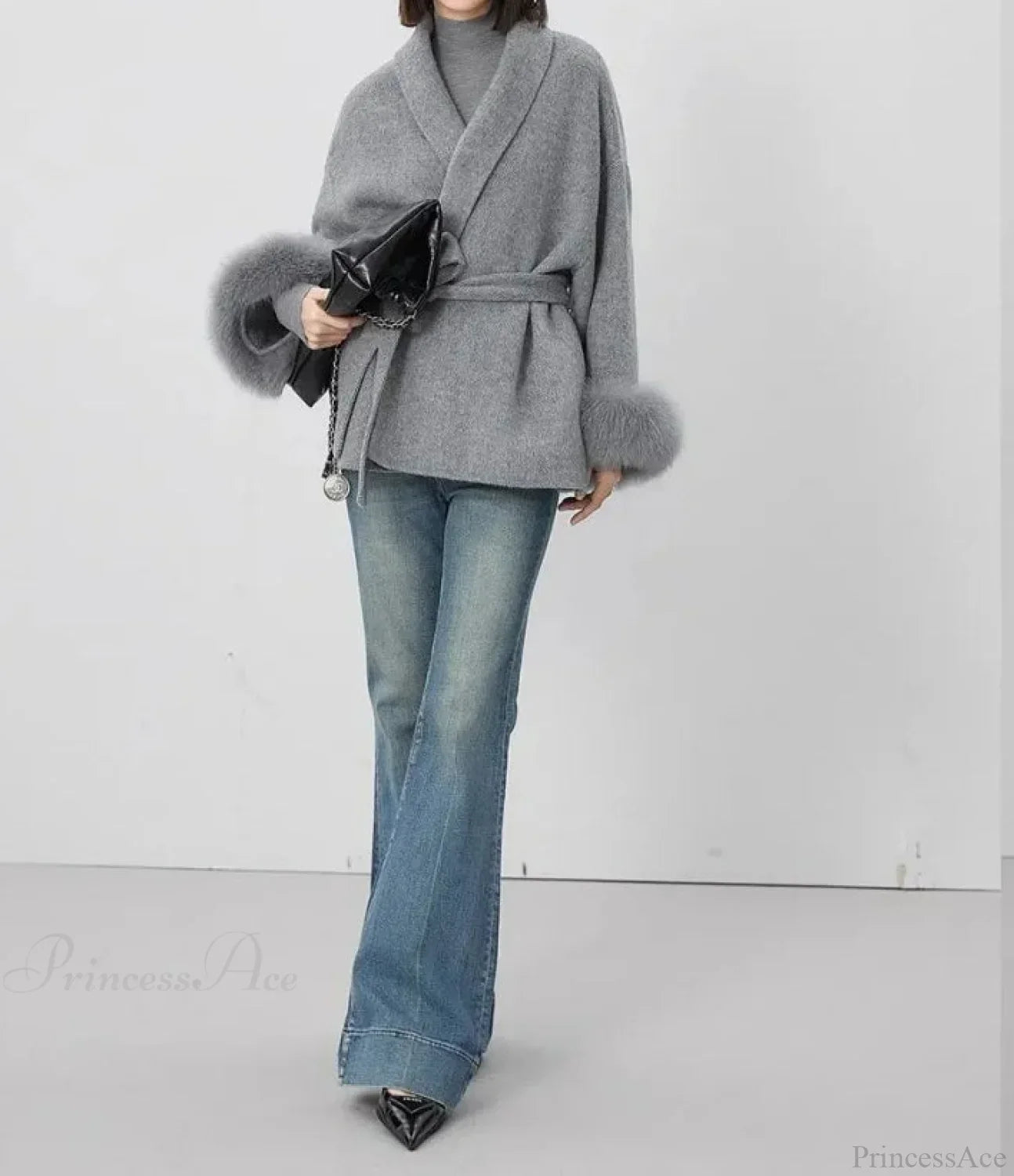 Kashmirfrakke med pelsmanchetter, rævepelsoverfrakke
