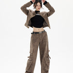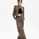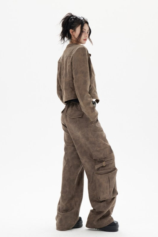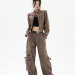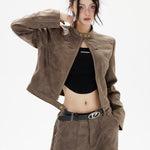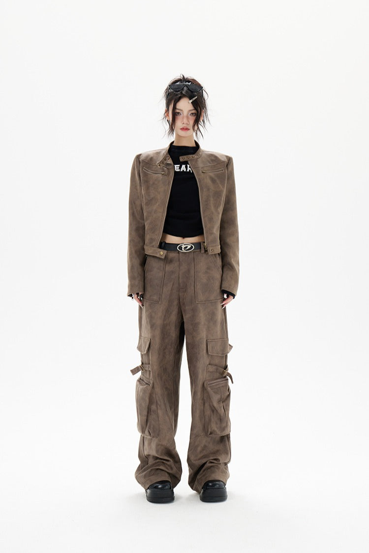 Kort bikerjakke i læder