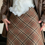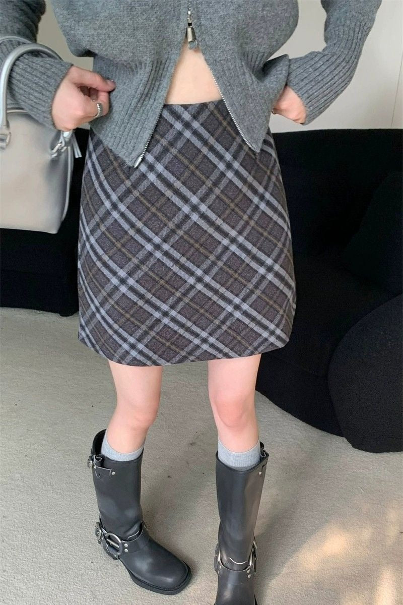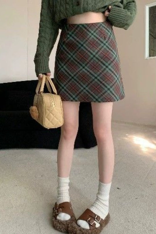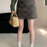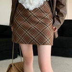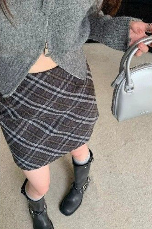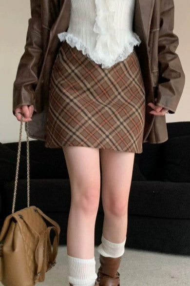 Vintage kort nederdel i højtaljet, tætsiddende, ternet tweed