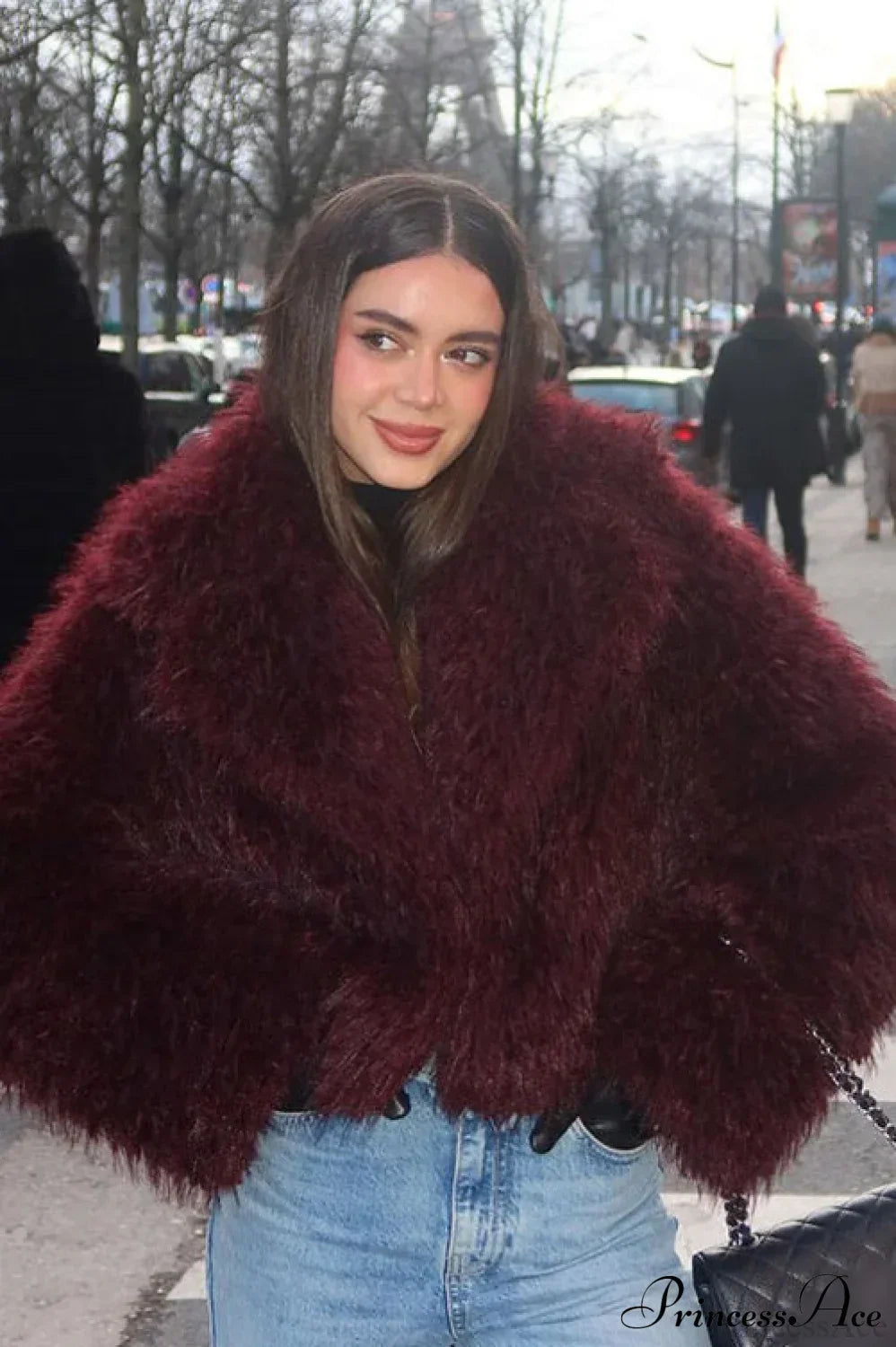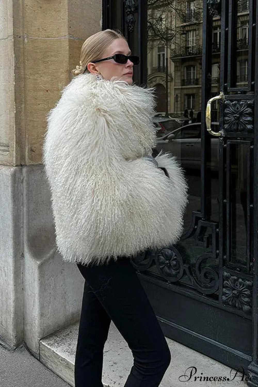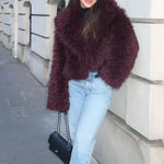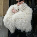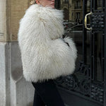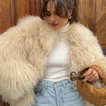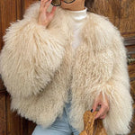 Kort vest i kunstpels og lammeskind
