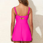 Dame badedragtkjole – Tætsiddende snit – Løstsiddende nederdel – Hurtigtørrende stof – Rund hals