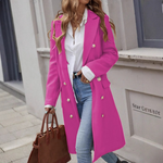 Lang damefrakke – Uld – Tætsiddende snit – Dobbeltradet – Elegant bred krave