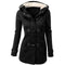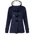 Lang damefrakke – Uldblanding – Tætsiddende snit – Hætte – Vippelukning