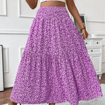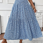 Lang damenederdel - Elastik i taljen - Flæsemønster - Blomsterprint