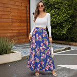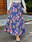 Lang nederdel til kvinder – A-formet snit – Elastik i taljen – Flæser – Blomsterprint