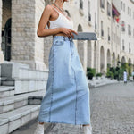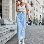 Lang damenederdel - Høj talje - Lige snit - Slidstærk denim - Afslappet stil