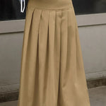 Ensfarvet højtaljet plisseret maxinederdel