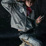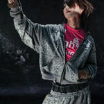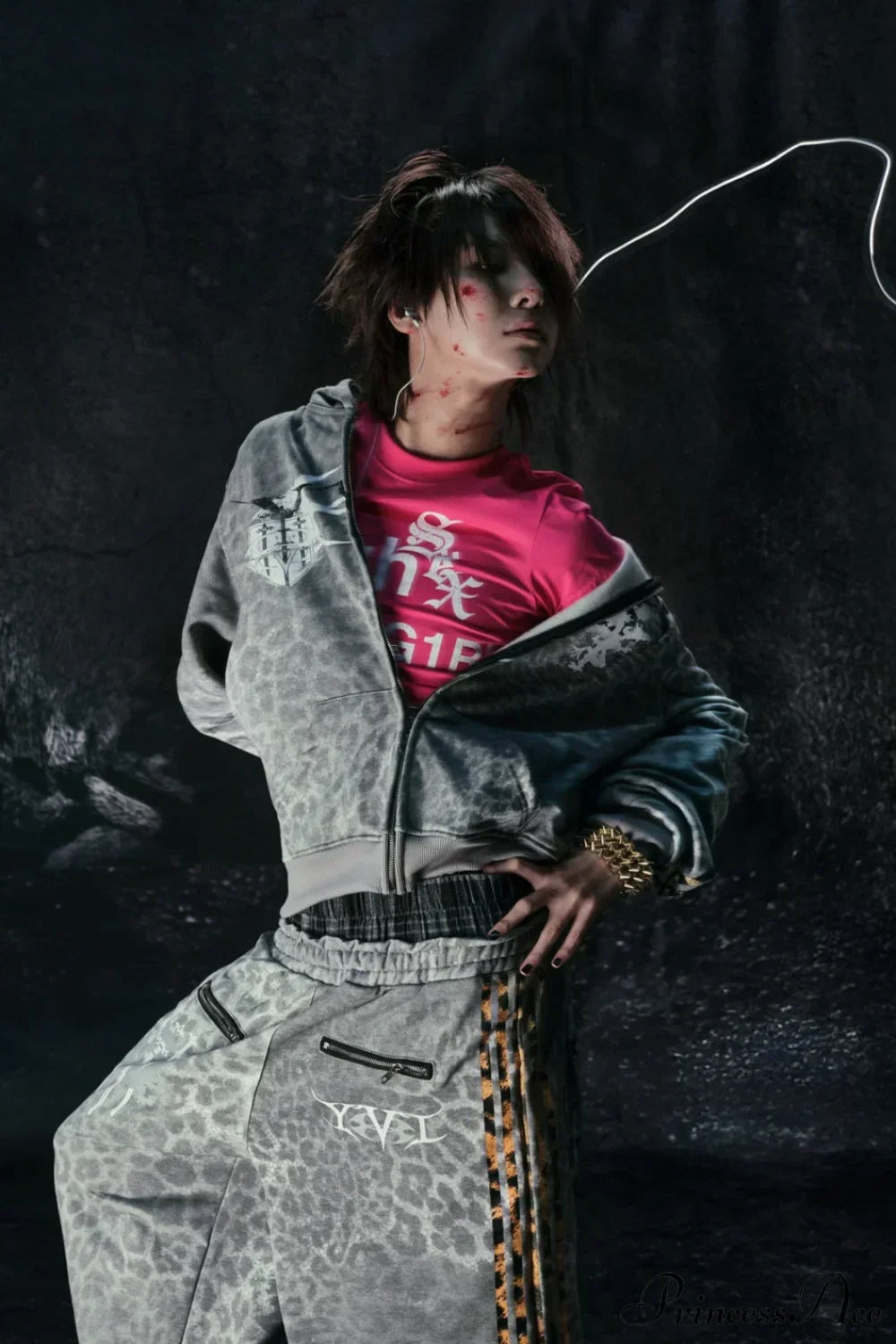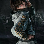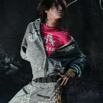 Y2K hættetrøje med leopardstriber og lynlås