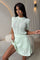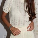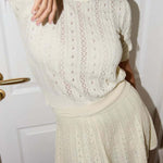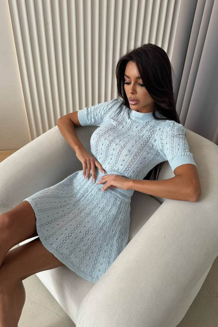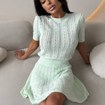 Ensfarvet, åbent, let strikket nederdel og rund hals sæt
