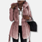 Mellemlang damefrakke – Kunstpels – Tætsiddende snit – Bælte – Lange ærmer