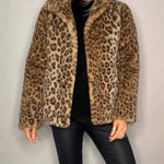 Damefrakke – Oversized pasform – Kunstpels – Skræddersyet krave – Leopardprint