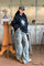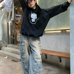 Patchwork-denim cargobukser med lommer i streetwear-stil