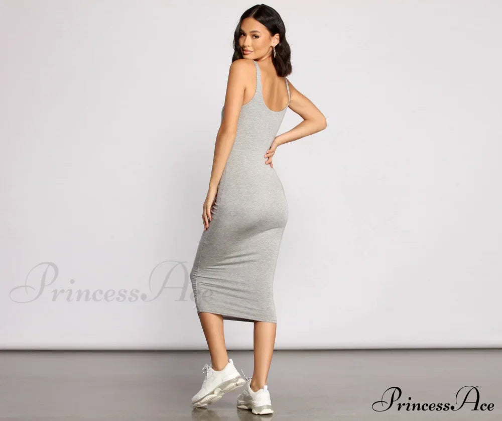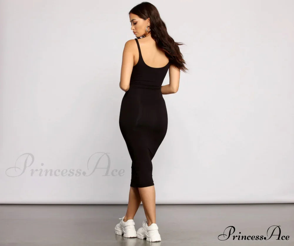 Slay Every Day basis- og elegant midikjole med rund hals